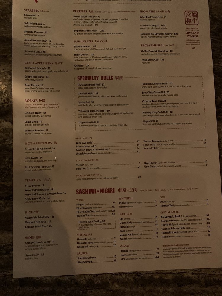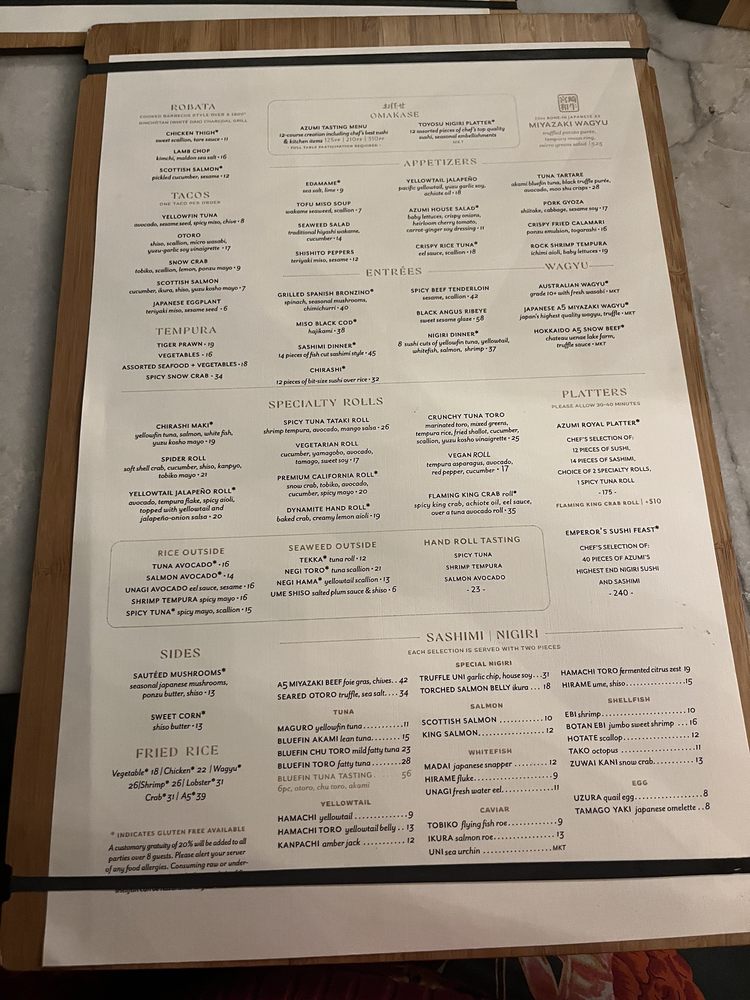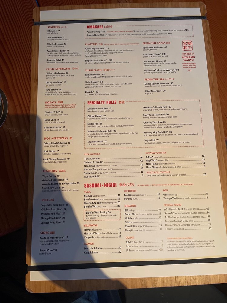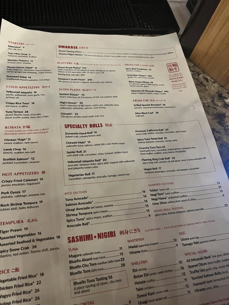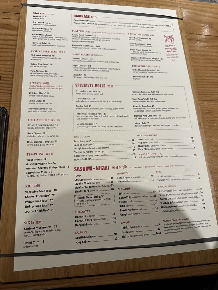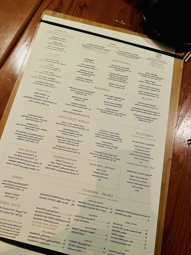 Azumi Tasting Menu